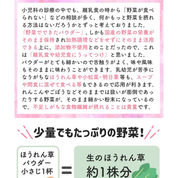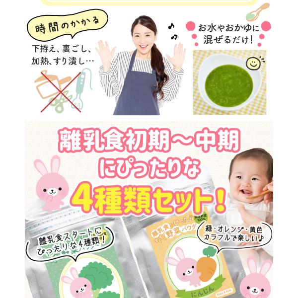 離乳食 5ヶ月 6ヶ月 7ヶ月 ほうれん草 ベビーフード 野菜パウダー 国産 にんじん ブロッコリー かぼちゃ 初期 中期 介護食