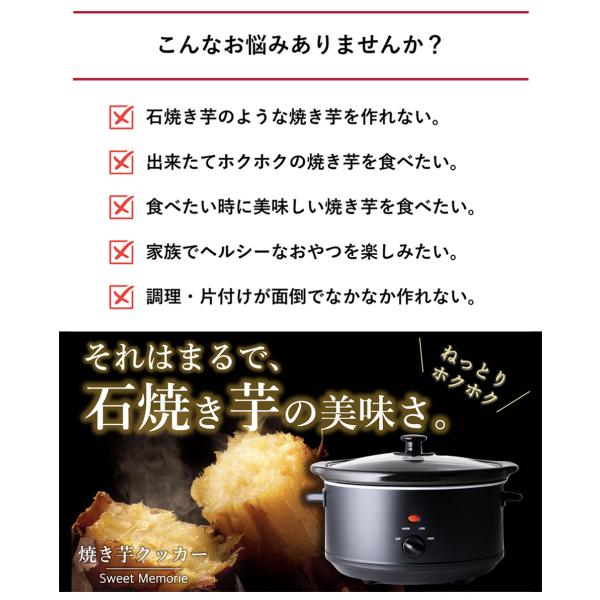 焼き芋機 家庭用 焼き芋メーカー 焼き芋器 電気 焼き芋鍋 焼き芋クッカー Sweet Memorie スロークッカー 低温調理 遠赤外線 調理鍋 鍋
