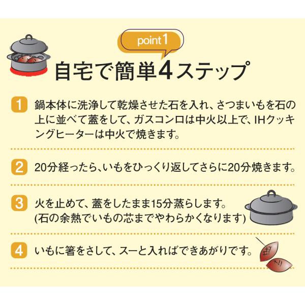 風味抜群、ふっくら、本格派の石焼いもが簡単に作れます。