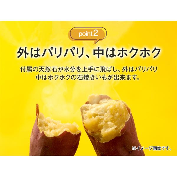 付属の天然石が水分を上手に飛ばし、外はパリパリ、中はホクホクの石焼きいもが出来ます。