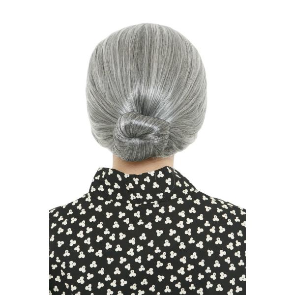 おばあさんになりきれる、お団子結びの白髪ウィッグです。