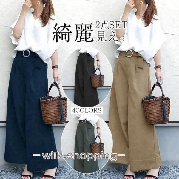 セットアップ レディース 夏服 トップス ドルマンスリーブ プルオーバー Vネック ワイドパンツ ロングパンツ 大人おしゃれ 夏秋 40代50代60代 無地 きれいめ