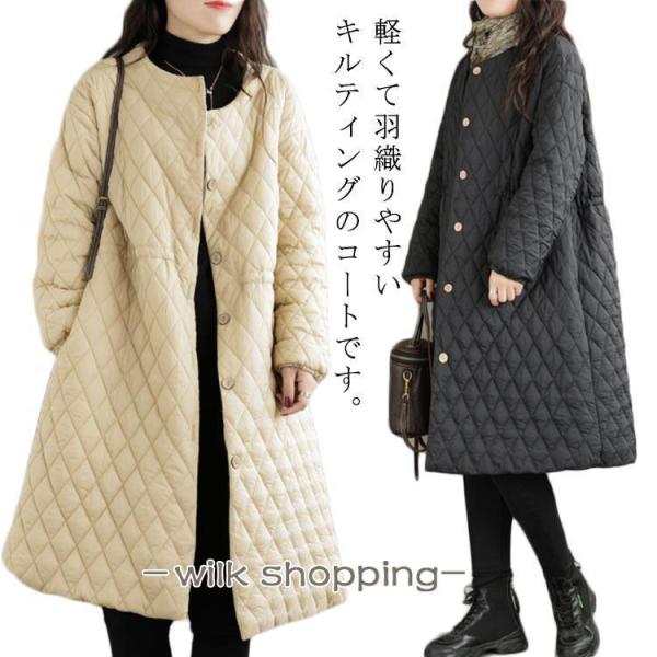 コート ブルゾン キルティングコート レディース ロングコート キルティング 中綿 中綿コート ノーカラー キルティングコート キルト アウター ジャ