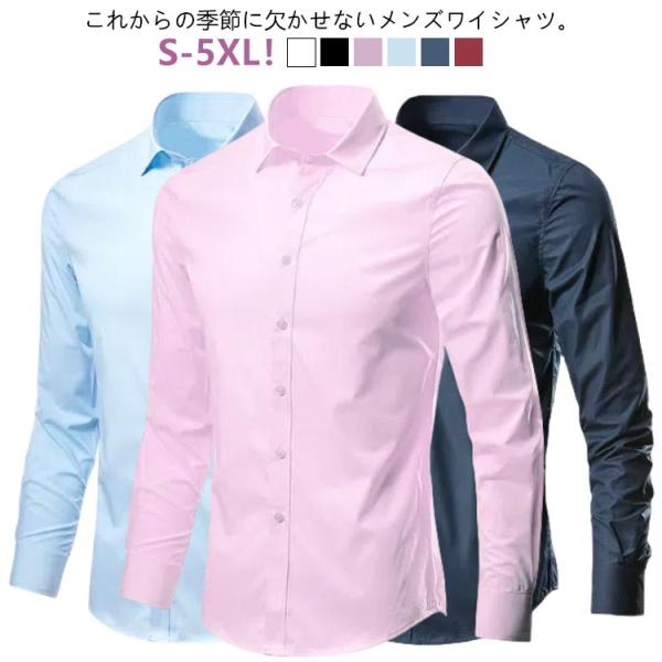 形態安定 長袖 結婚式 白シャツ ワイシャツ 無地 カッターシャツ Yシャツ スリム ビジネスシャツ ワイシャツ 細身 大きいサイズ メンズ 黒シャツ