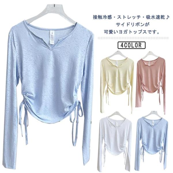 ヨガウェア ウェア トップス ホットヨガ ヨガtシャツ レディース 薄手 ダンス 接触冷感 長袖tシャツ ストレッチ ヨガウェア ジム スポーツ フィ