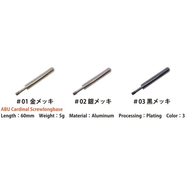 リールの側面(ハンドルがある面の反対側)のボディープレートをとめるネジを「スクリュウーロングベース」に交換して使用します。アルミ塊を精密機械で削り出し特殊工程を経て高度なメッキ加工を施すジャパンクオリティーの一品。その効果としては、直接地面などに置いた時に接触を最小限に抑え、リールへの砂かみなどを防ぎ、写真撮影時などにも役立ちます。