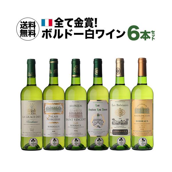 【今だけ10%OFFクーポン付き】白ワイン 全て金賞!ボルドーブランセット 750ml 6本入 フランスワインセット 1本あたり1,000円(税込) 送料無料 長S