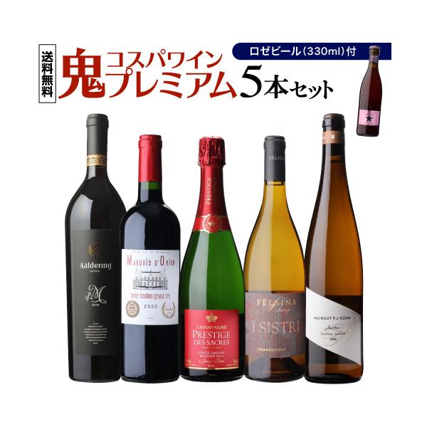 ワイン ワインセット ミックス 1本あたり3,200円(税込) 送料無料 鬼コスパワイン プレミアム 5本セット おまけ付 第23弾 浜運A