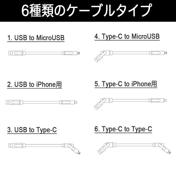 6in1 マルチケーブル 急速充電対応 1[M] USB/microUSB/iPhone用/Type-C 端子に対応 USBマルチケーブル マルチUSBケーブル マルチ充電ケーブル