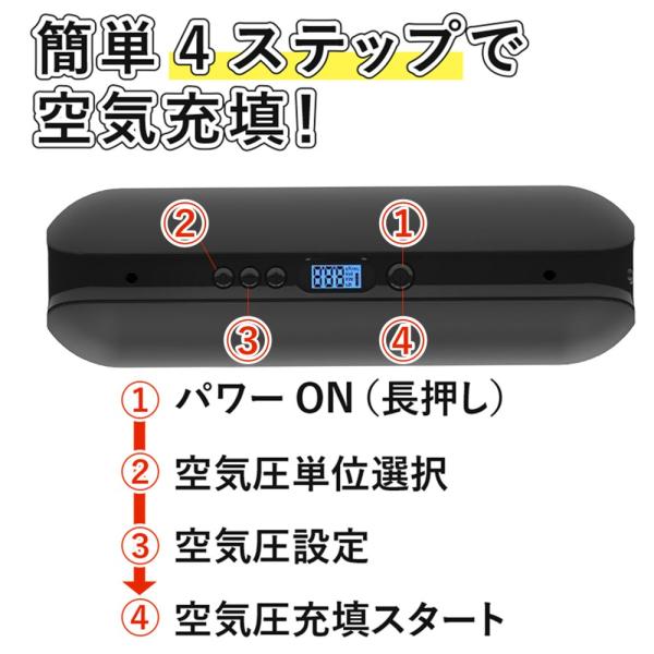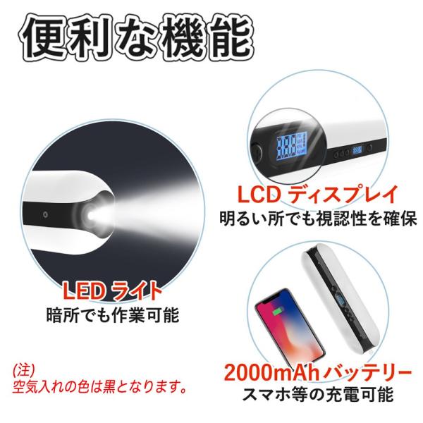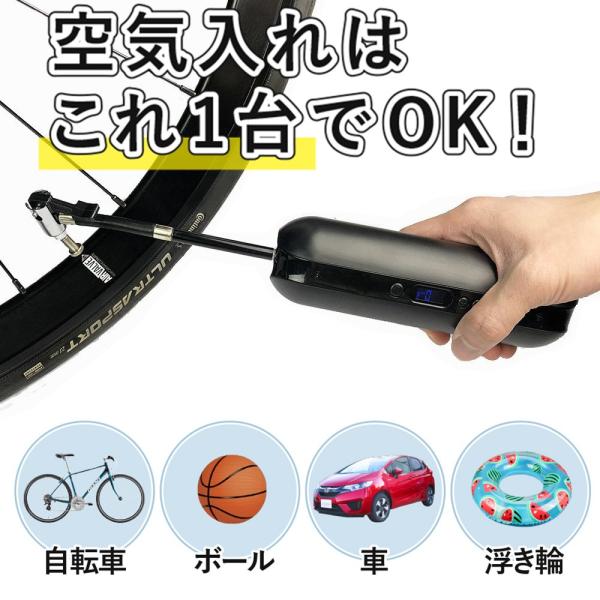 電動空気入れ コードレス スタイリッシュ コンパクト バイク ロードバイク クロスバイク ボール 浮き輪 にも使用可 (ブラック)