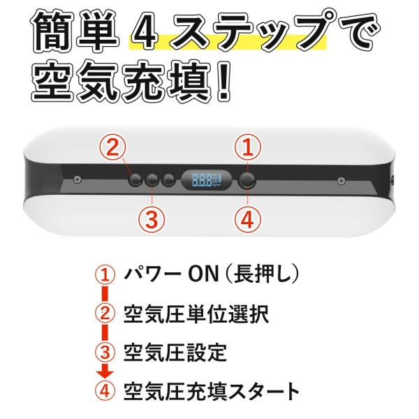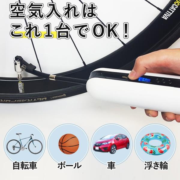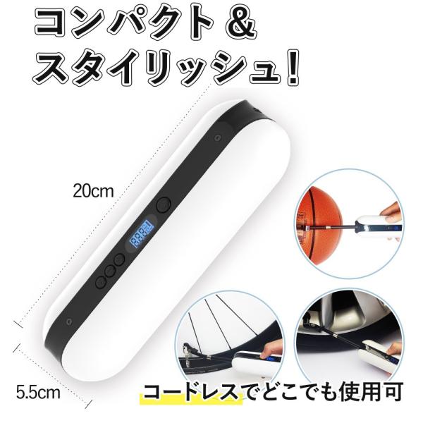 電動空気入れ コードレス スタイリッシュ コンパクト ロードバイク クロスバイク ボール 浮き輪 にも使用可 (ホワイト)