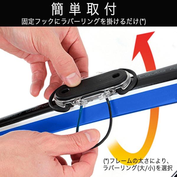 トップチューブ、ダウンチューブ、シートチューブだけでなく、ハンドルやハンドルステム、シートピラーにも取付可能。