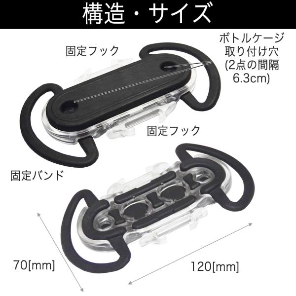 伸縮性の優れたラバーによるホールドで、いろいろな形状・大きさのアイテムを取り付けることが出来ます。