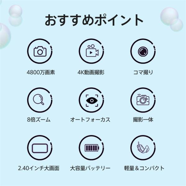 【キーワード】コンパクト 激安 母の日 父の日 新生活 おしゃれ セール シンプル 便利 無地 長持ち 耐久性 新作 人気 定番 敬老の日 多機能 トイカメラ デジタルカメラ 4K 4800万画素 8倍ズーム 防塵 軽量 初心者 IPS大画面 高画質 オートフォーカス 高解像度 自撮り ビデオカメラ キッズカメラ 子供 動画 撮影 操作簡単 ボタン式 女の子 男の子 誕生日 プレゼント 小学生 子供 誕生日 かわいい
