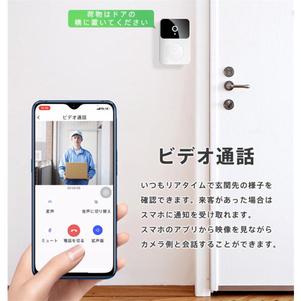 インターホン ワイヤレス 工事不要 カメラ付き WIFI チャイム 玄関 ドアベル 呼び鈴 防犯対策 遠隔監視 インターフォン 受信機 ドアホン 通話 爆買