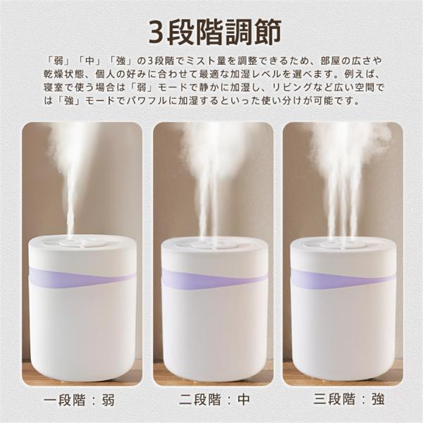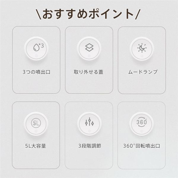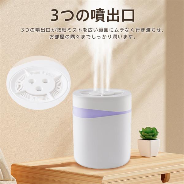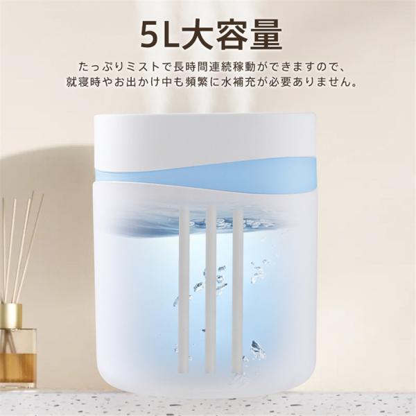 加湿器 超音波式 大容量 5L 卓上 加湿機 上部給水 USB給電 3段階調節 空焚き防止 省エネ ムードランプ 3つ噴出口 お手入れ簡単 ミスト 爆買