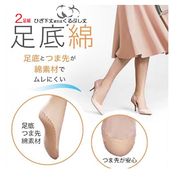 送料無料 2足組 足底綿 膝下 ひざ下丈 くるぶし丈 ストッキング 靴下 ひざした ショートストッキング 吸汗 速乾 UV対策 レディース 女性用 ポイント消化