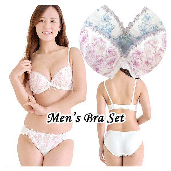 送料無料 清楚美人 チュールレース メンズブラジャー ショーツセット A85 A90 A95 サイズ メンズブラ 大きいサイズ かわいい メンズ 男性用 爆買