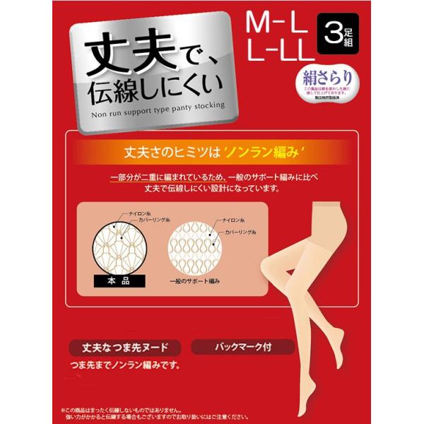 丈夫で伝線しにくい ストッキング 3足組 2足組 つま先ヌード M-L L-LL 絹さらり ノンラン編み 色 黒 ベージュ 美脚 写真 卒業式 入学式 服装 爆買