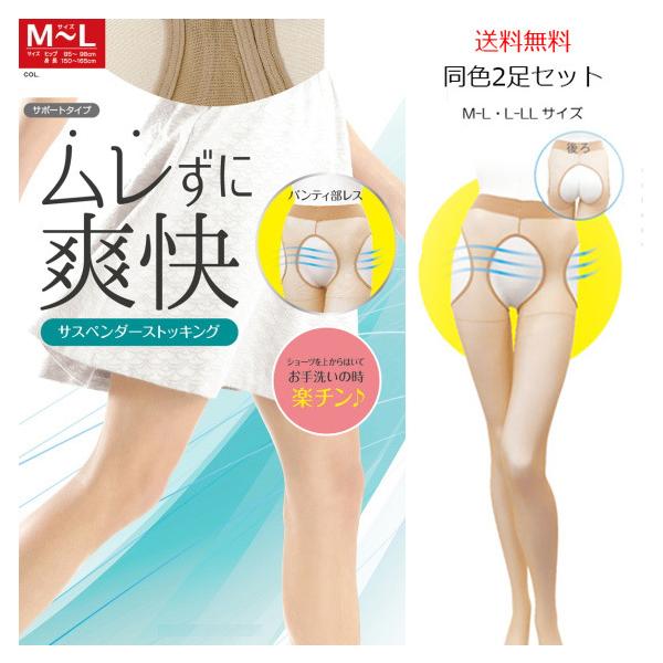 同色2足セット レディース ストッキング 肌色 ベージュ 黒 ムレずに爽快 M-Lサイズ L-LLサイズ サスペンダー タイプ ポイント消化