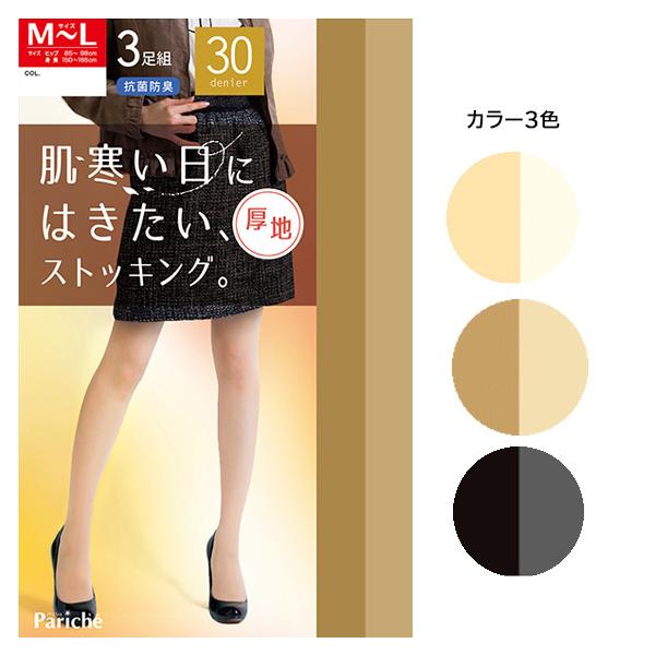 3足組 肌寒い日にはきたい 少し厚地の ストッキング サポートストッキング 30デニール 透明感 サポートタイプ 抗菌 防臭 レディース 女性用 ポイント消化