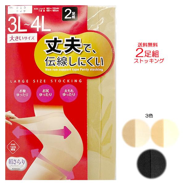送料無料 2足組 大きめサイズ ストッキング 丈夫で伝線しにくい 3L 4L 大きいサイズ レディース ストッキング 女性用 のびのび ポイント消化