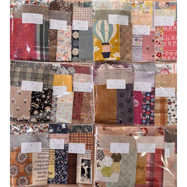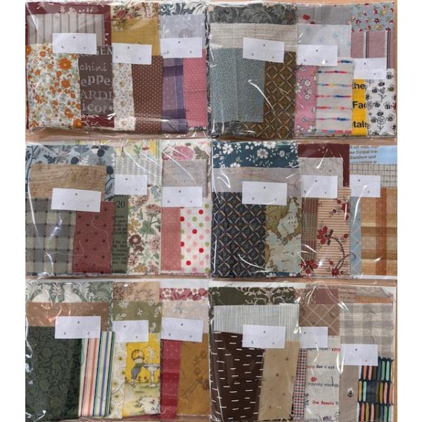 このキットは写真と同じ布がはいるものではありません。ポップなものや、シックなものなど幅広い柄合わせになります。(画像2〜4枚目の様な色合わせがランダムでお届けになります。)