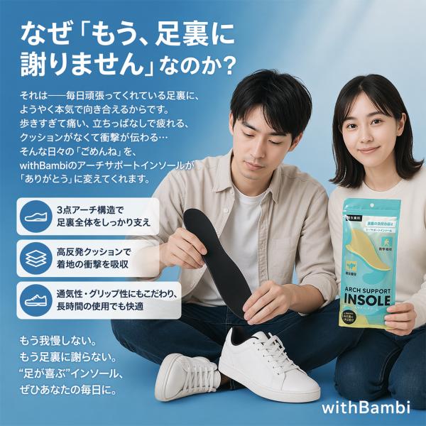 仕事用にも、通勤・散歩・軽スポーツにも幅広く使える定番インソール。