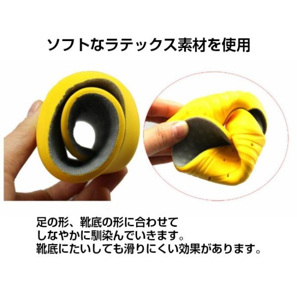 つま先部で約5mm、かかと中心部で約10mmの厚みがあります。