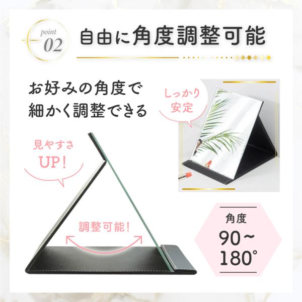 卓上ミラー おしゃれ 鏡 化粧 コンパクト 持ち運び スタンド シンプル 卓上 スタンドミラー 折りたたみ テーブルミラー 角度調整 黒 かわいい メイク直し