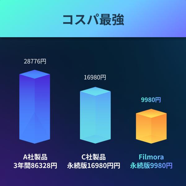 ◆ Filmoraは初心者でも上級者でも使いやすいインターフェースを搭載しており、DVDへの書き込み、デバイスへの保存、そしてYoutubeへの直接アップロードも可能です。動画編集が簡単に実現し、新機能が盛りだくさん!より早く、楽しい動画制作を実現する動画編集ソフトです。