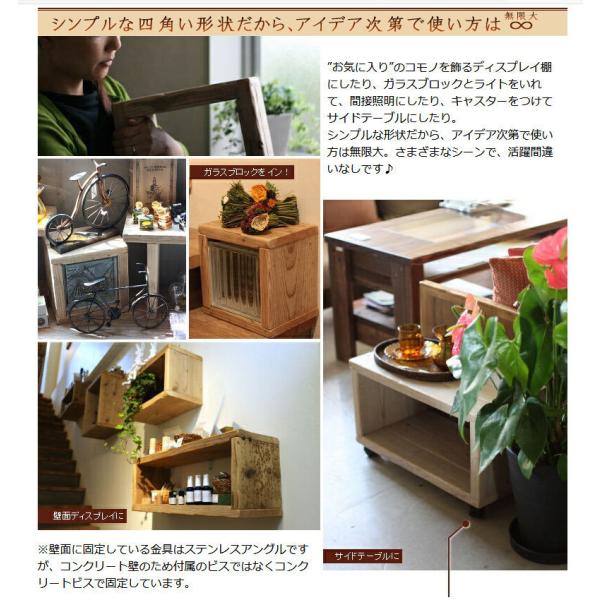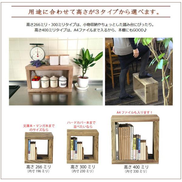 古材で味がある、丈夫でシンプルなキューブボックスです。