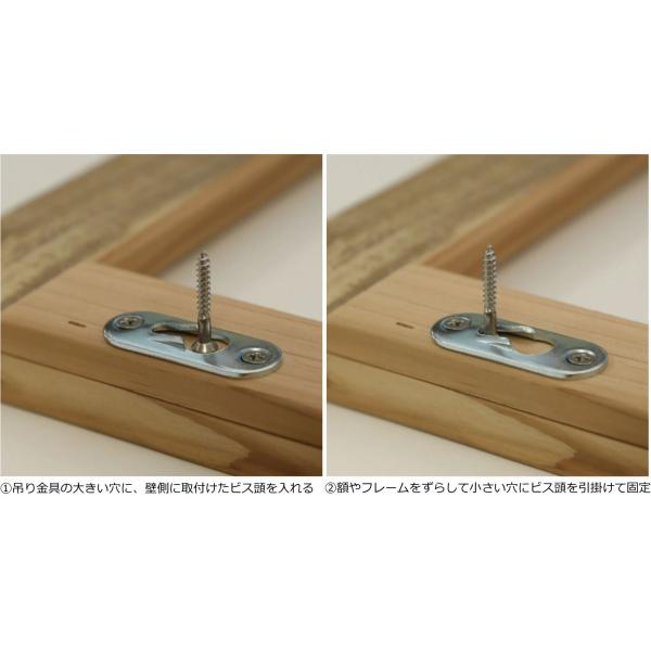 付属のビスでキーホール吊り金具を鏡や額などの背面に取り付けます。