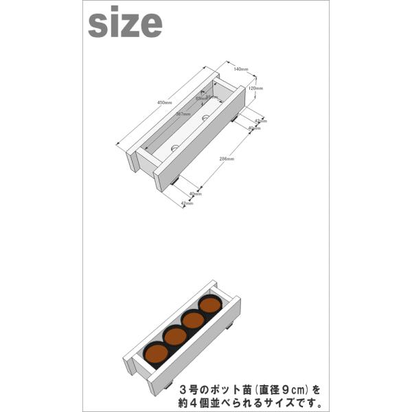 ※3号ポット苗(直径9cm)を約4個並べられるサイズ