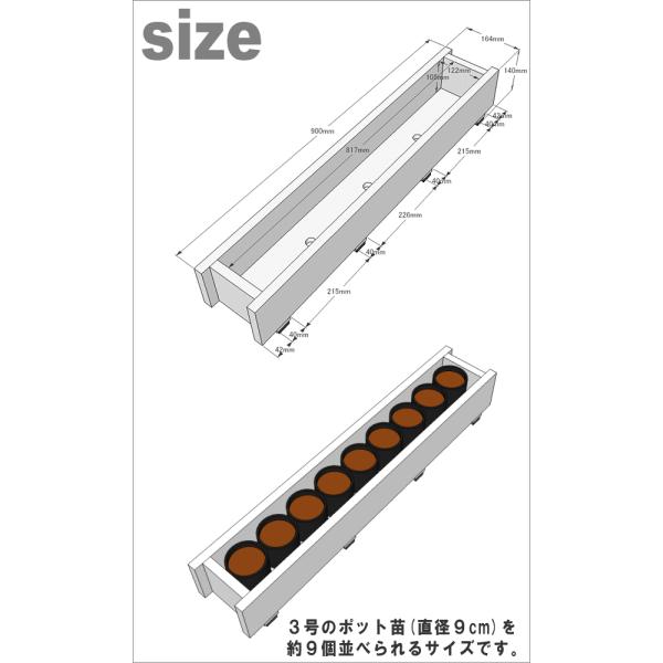 ※3号ポット苗(直径9cm)を約9個並べられるサイズ
