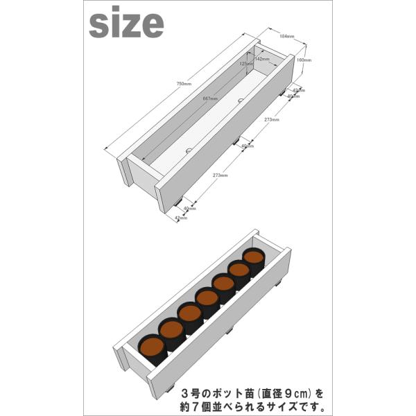 ※3号ポット苗(直径9cm)を約7個並べられるサイズ