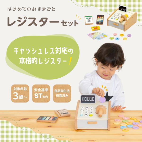 【特典付き】 はじめてのおままごと レジスターセット お店屋さん 木製 ウッディプッディ レジ お金 ままごと