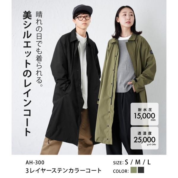 レインコート メンズ レディース 通勤 ステンカラー 防水 透湿 高機能 おしゃれ 自転車 ロング 雨具 AH-300 3レイヤーステンカラーコート