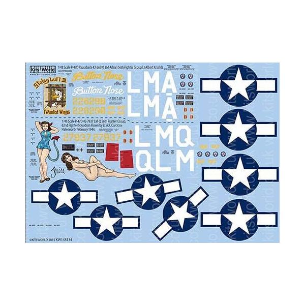 キッツワールドKW148134 1/48 P-47D Razorbacks 'Button Nose'用デカール