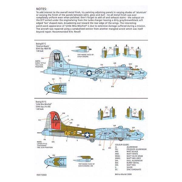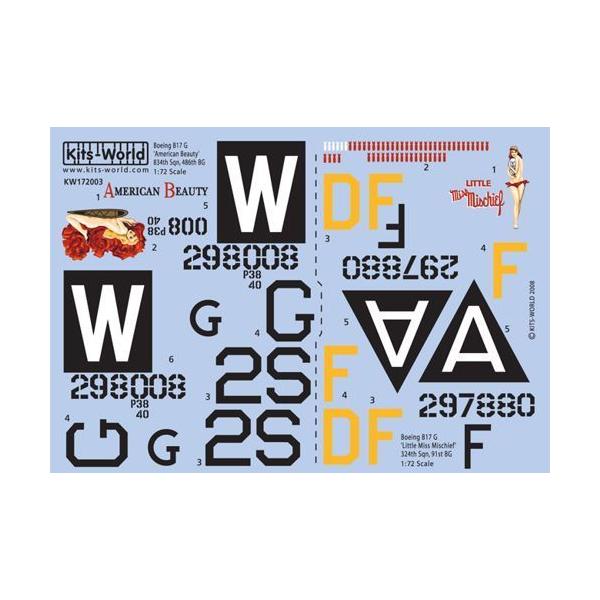 Kits-World(172003)1/72 Boeing B-17G Flying Fortress 'American Beauty' 他用デカール