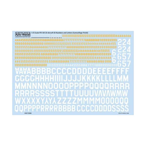 Kits-World(172008)1/72 North-American P-51B/P-51D ムスタングの識別ナンバー、文字のデカール