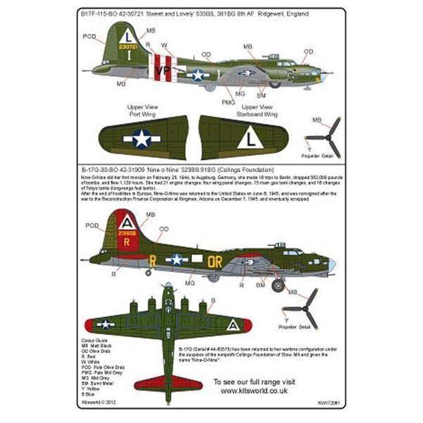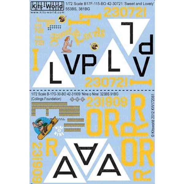 キッツワールドKW172081 1/72 Boeing B-17F Flying Fortress 'Sweet and Lovely'他用デカール