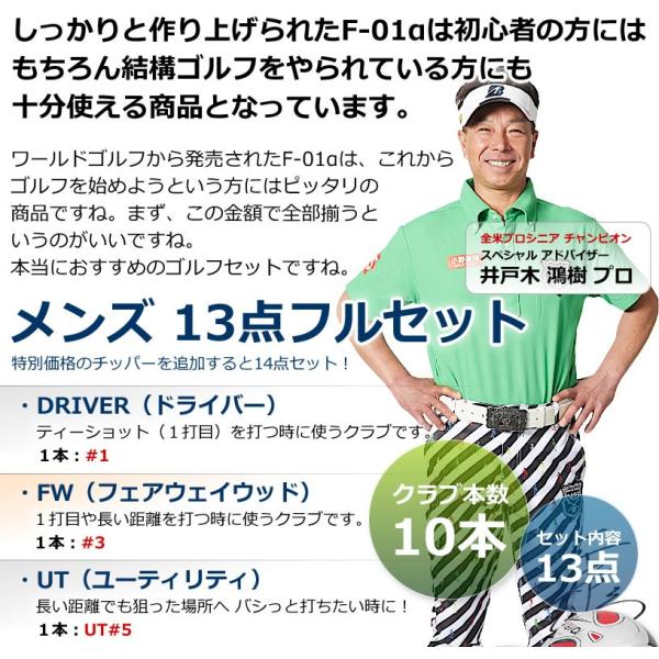 ランキング受賞! ゴルフクラブセット ワールドイーグル メンズ F-01α 13点 10本 ゴルフセット 選べるスタンドバッグ付 右用 左用 初心者 新品 爆買