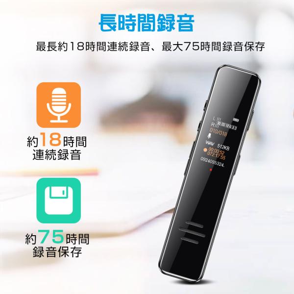 【長時間録音可能】ボイスレコーダーは16G容量があり、録音音声解像度により、最長約1164時間の録音データを保存できます。電池は250mAh、満電の状態で約18時間連続録音可能です。本体わずか52g、90*18.8*11.8mmだけのサイズで、持ち運び便利になります。