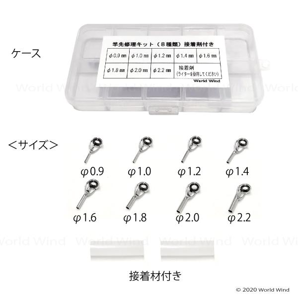 竿先 修理 トップガイド 交換 補修用キット 釣り 穂先 ステンレス 8種類+接着材セット ケース付