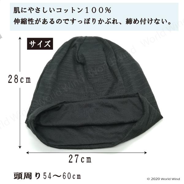 ・肌に優しいコットン100%、伸縮性があるので締め付けず爽やかな被り心地です