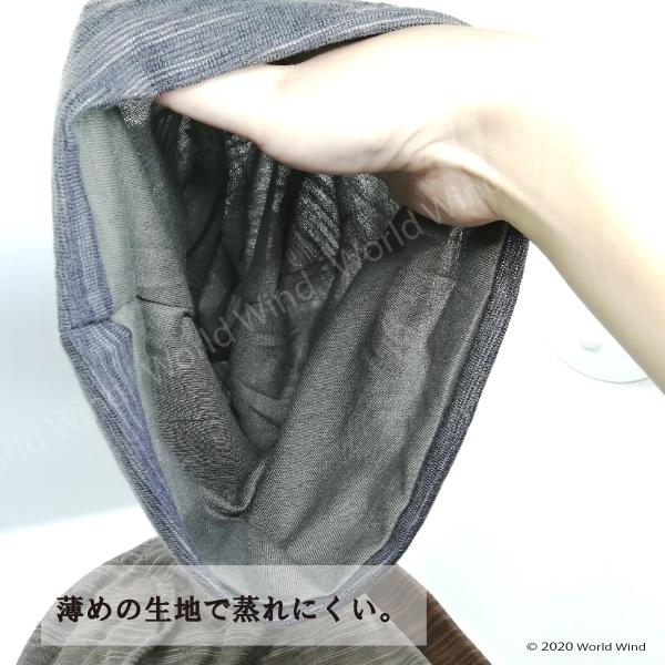 コットン100%で爽やかな被り心地、スッポリと頭を隠せます