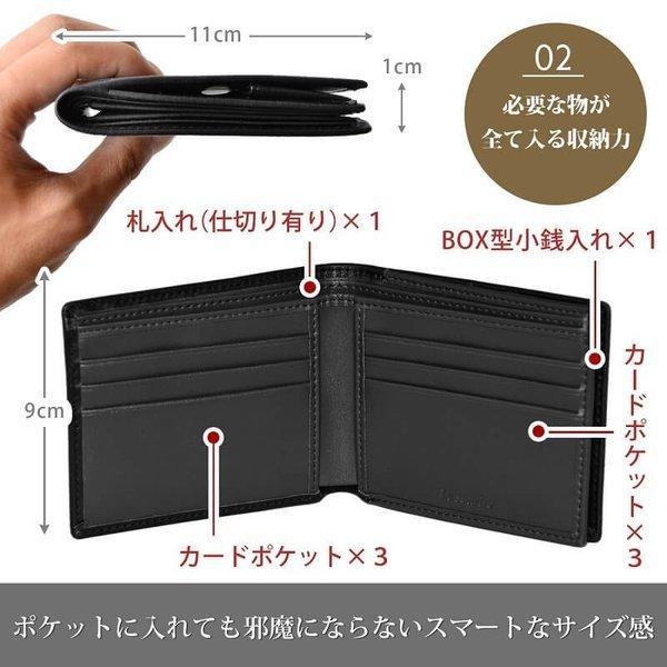 財布 メンズ 二つ折り 本革 ボックス型小銭入れ スリム 財布