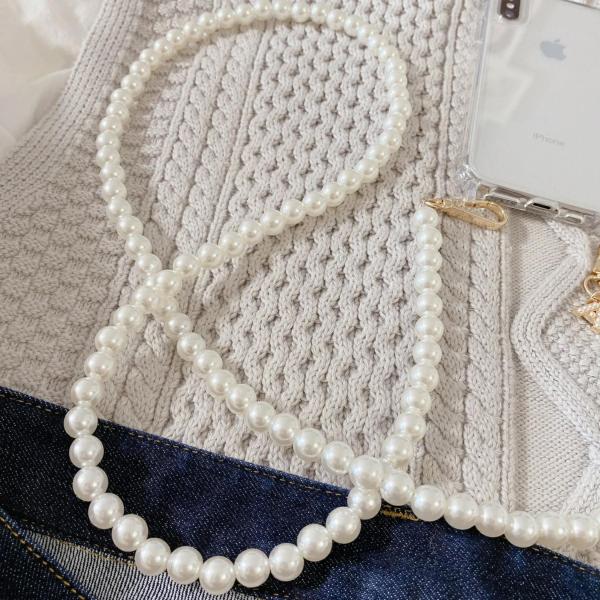 iPhoneパールストラップ スマホショルダー チェーンストラップ ストラップホルダー付きiPhone17/17Air/17Pro/17ProMax/16/16Plus/16Pro/16ProMax/15/14/13/12