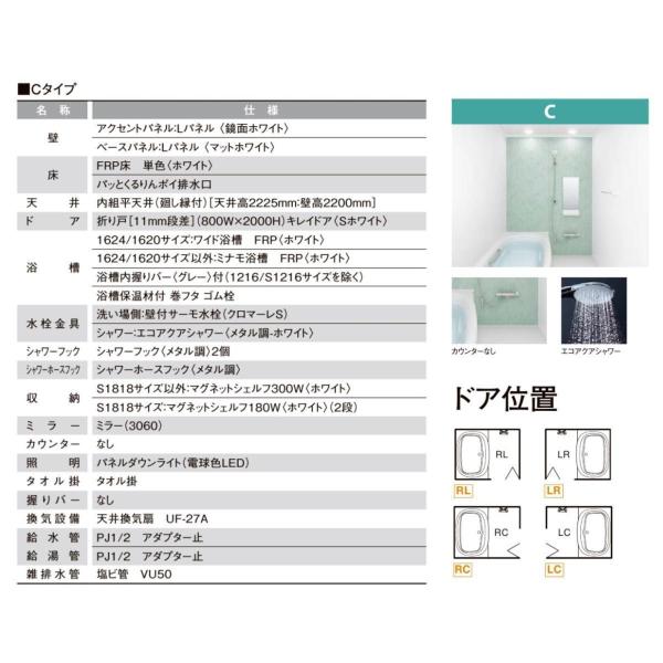 送料無料 LIXIL リデア BDUSシリーズ Cタイプ 1616サイズ 基本仕様 BDUS-1616LBC 戸建用システムバスルーム オプション対応 メーカー直送